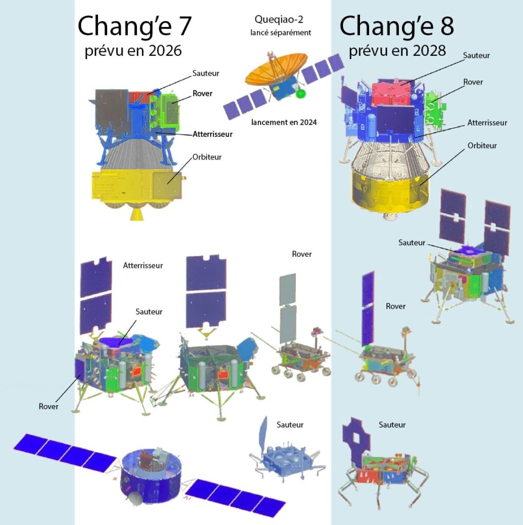 Composants de Chang’e 7 et 8. Crédit : Cité de L’Espace